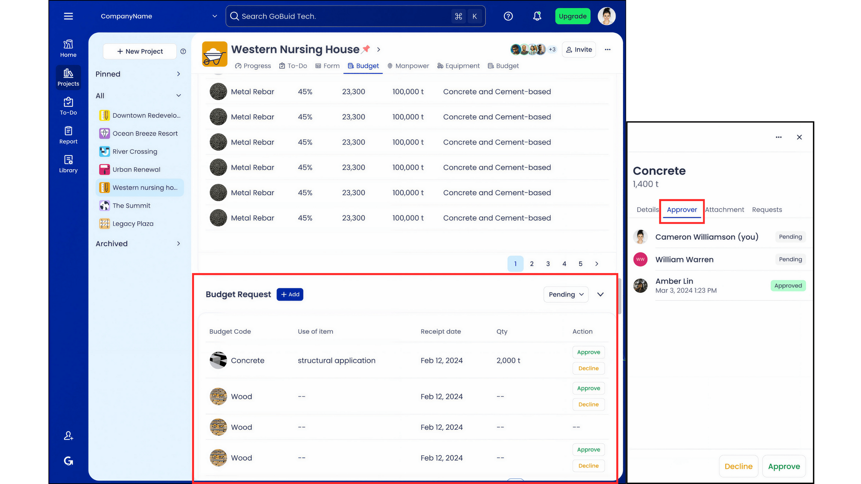 Digital platforms can enforce strict adherence to material safety standards by transparent accountability. GoBuid’s Construction software can require approval for every material order. This material approval process would necessitate a material approval record and signature from authorized professionals at multiple stages (procurement, site delivery, installation). This level of digital documentation makes it much harder to use non-compliant or fraudulent materials. An immediate and traceable audit trail prevents contractors from misleading inspectors by using non fire-resistant netting or other materials that do not meet fire-safety standards.
