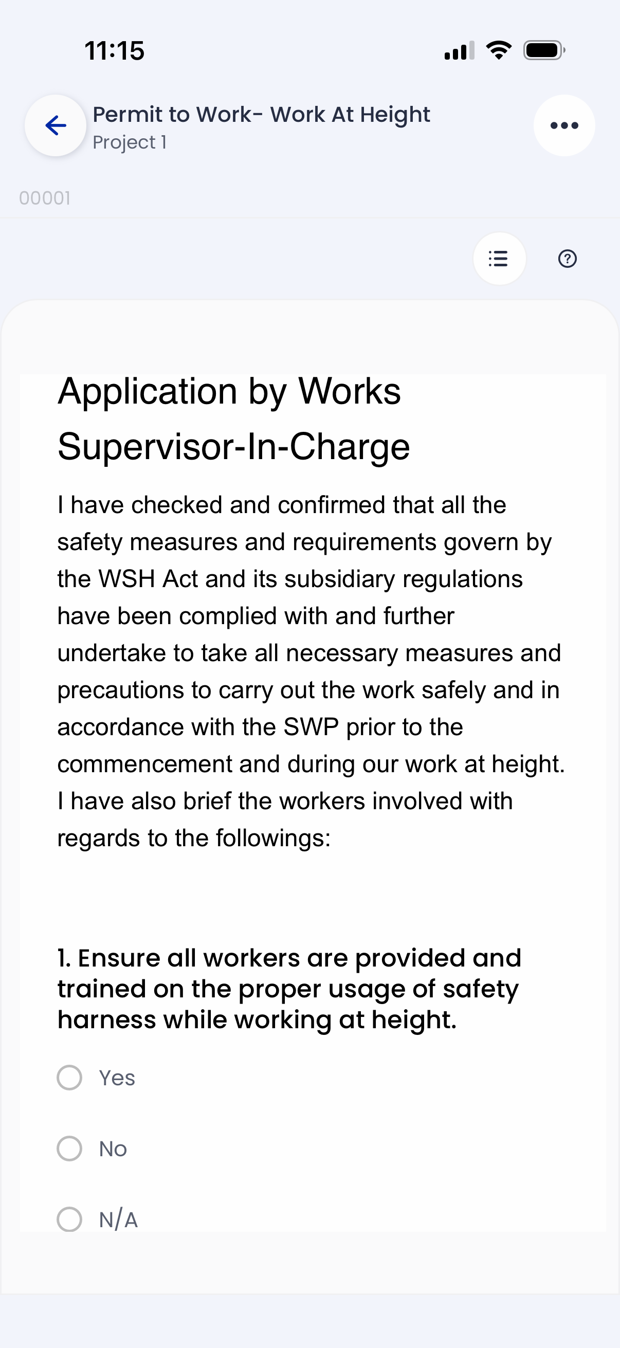 1.Mobile-First "Source Capture" (Forms): Site teams submit safety checks, daily progress, and manpower/OT records via mobile—as easily as sending a WhatsApp message (photo + tick + submit).